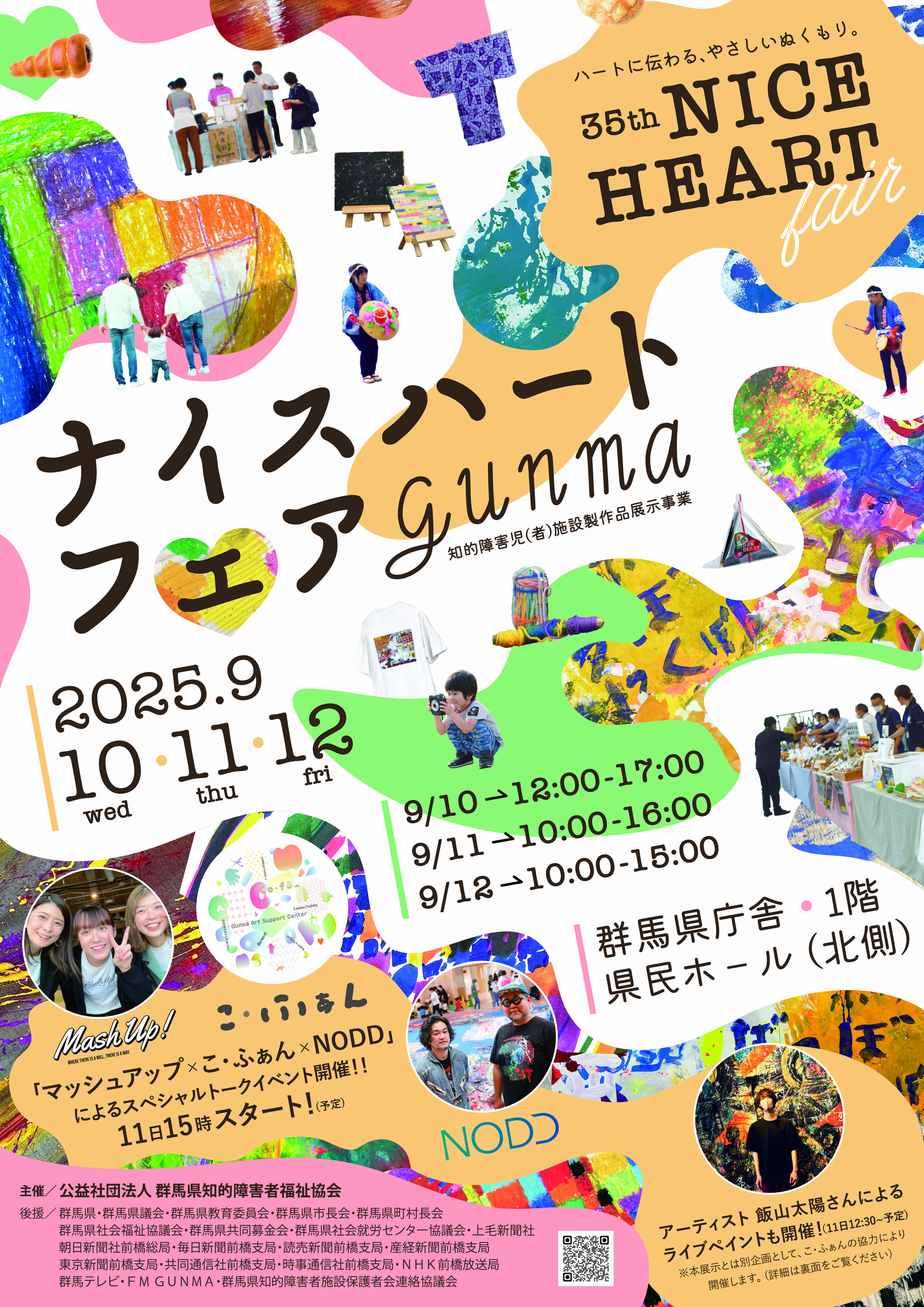 群馬県内の福祉事業所が製作した雑貨や食品(食材)、アート展示などの他に、ライブペインティングやトークショーなどのイベントもあります!!