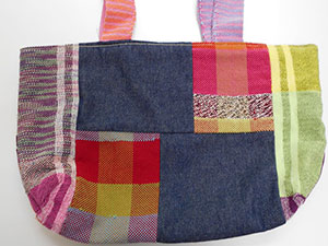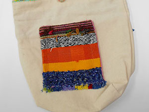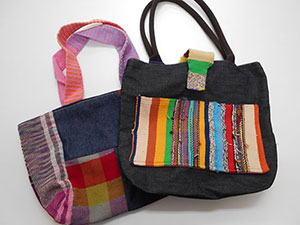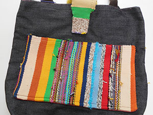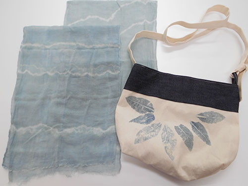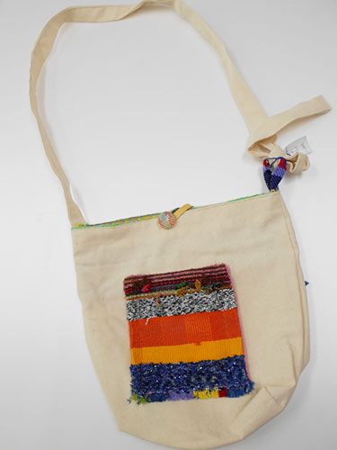 利用者さんの織ったさをり織りを、ショール、バック、小物などに加工し販売しています。また、お楽しみクラブで作った染め物やビーズアクセサリーも人気商品です。