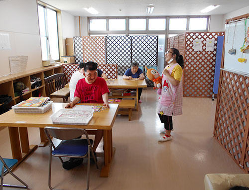 - 障害者(主に知的障害者)に対し、日中に行う障害福祉サービスを提供します。出来る事を増やし、一人一人に合った作業(自立課題、創作活動、生産活動等)を提供し、さらに家庭以外の様々な体験をすることで、自立して元気に豊かに生活できる力を養成します。