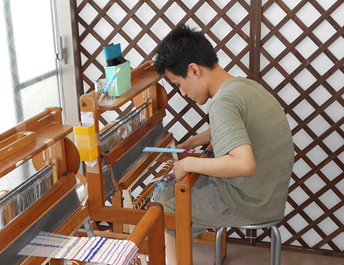 9:30 - 作業(さをり織)織り方に決まりはなく、自由に思うままに織ります。完成した物は、世界に1つの作品です。